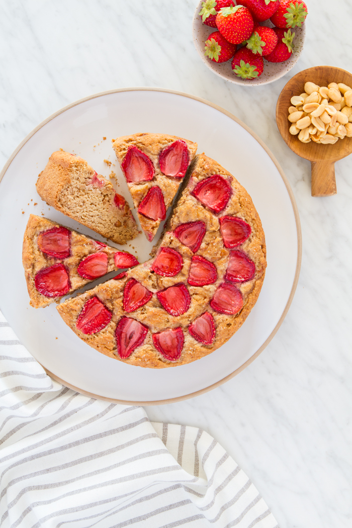 A love for food and photography sparked this photo series. Wholesome plant-based and gluten friendly cuisine focusing on nutritious, local and seasonal ingredients. Featured here is a strawberry & crunchy peanut butter cake.